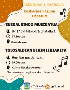 Como sabéis, el 3 de diciembre es un día importante, EUSKARAREN EGUNA. Con motivo de este día, el Gazteleku ha organizado diferentes actividades: