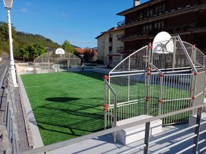 • Campo deportivo multiusos: Tiene suelo de hierba artificial y está preparado para la práctica de diferentes deportes. Por ejemplo, baloncesto, fútbol o balonmano.