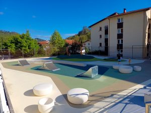 • Skate park: Es una zona preparada para realizar los primeros ejercicios con skate, patines o patinete, o también para aquellos que quieran mejorar un poco su nivel. Tiene rampas y plataformas de hormigón.