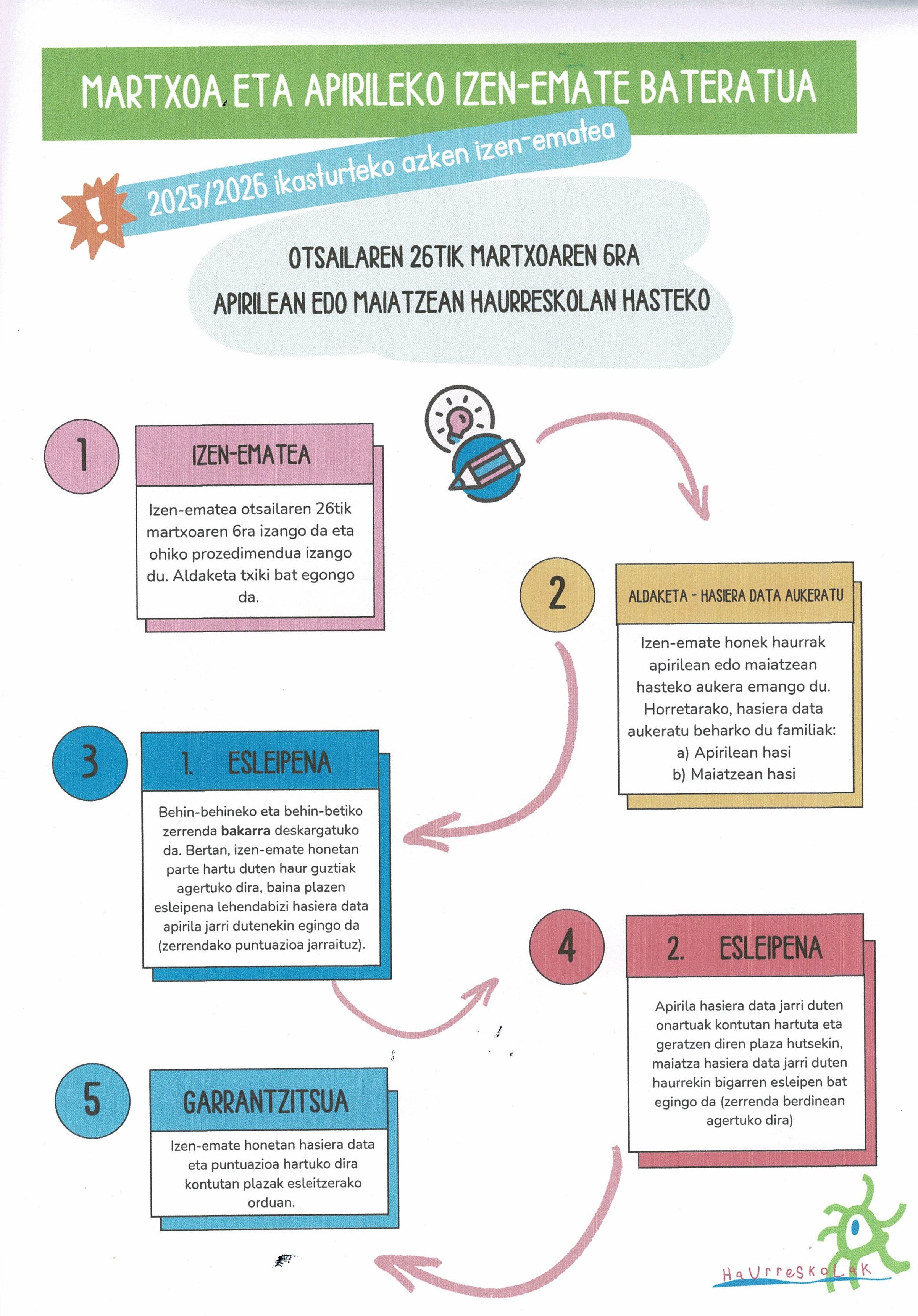 La Haurreskola de Amezketa informa de que el plazo de matriculación para el curso 2025/2026 estará abierto del 26 de febrero al 6 de marzo. Durante este periodo podrá realizarse la matrícula de los niños y niñas que comenzarán en abril o mayo.