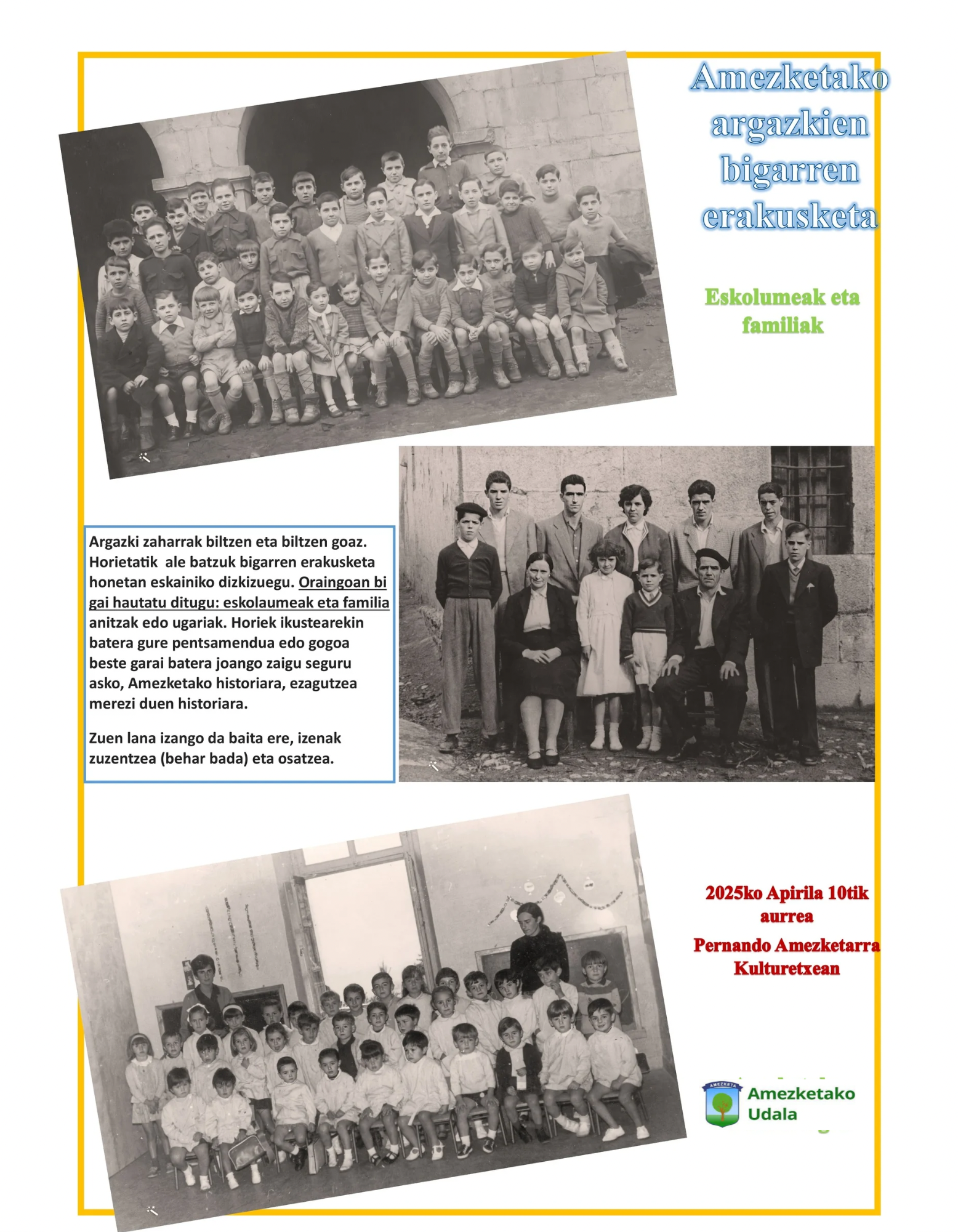 Ahora, vamos a poner la segunda tanda. Y, en nuestra opinión, hemos escogido dos temas de gran significado: las familias numerosas y las escolares. Al verlas, nuestro pensamiento o nuestro espíritu se trasladará probablemente a otra época, a la historia de Amezketa, a nuestra historia que merece ser conocida. También será tarea de todxs, si hace falta, corregir nombres y completar los que faltan.